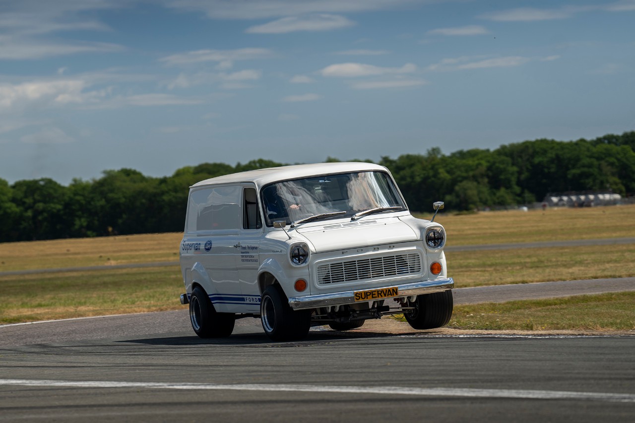 La primera SuperVan fue creada en 1971 como vehículo de demostración. Basada en la primera generación de la Transit, estaba equipada con el mismo motor central V8 del Ford GT40, que conquistó victorias legendarias en Le Mans y alcanzaba más de 240 km/h.