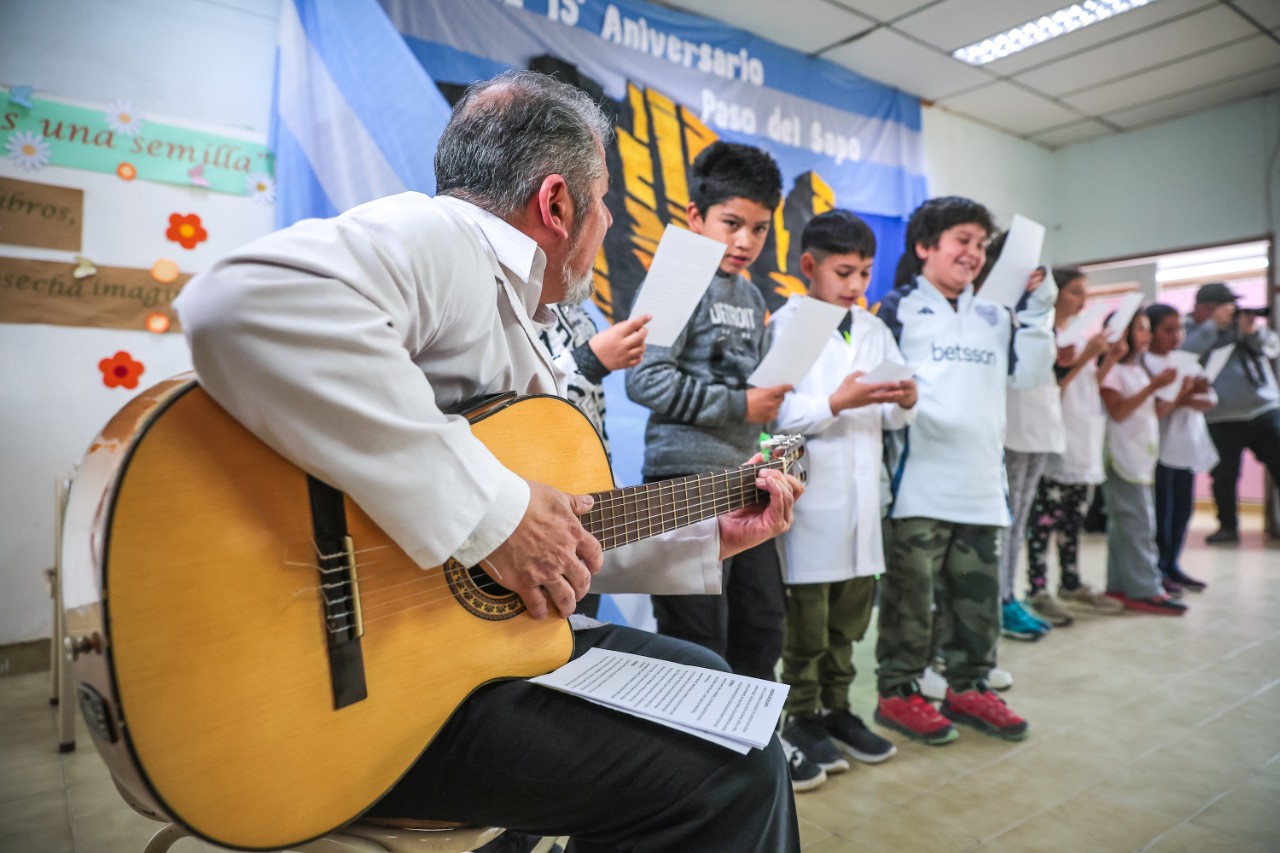 La jornada incluyó el corte de cintas para la inauguración formal de las nuevas instalaciones y la entrega de una placa que marca una nueva página en la escuela N° 134. A su vez, los alumnos y la comunidad de Paso del Sapo fueron los protagonistas de una jornada que se llevó a cabo en la escuela e incluyó las palabras de diferentes autoridades. Los estudiantes realizaron presentaciones musicales, invitando a los presentes a cantar y bailar al ritmo de la música local. Esta energía se vio reflejada en las sonrisas de los niños y sus familias quienes posteriormente disfrutaron de una tarde lúdica en una kermesse repleta de actividades recreativas. Además, los invitados compartieron momentos únicos con los chicos, recorriendo juntos las instalaciones, jugando, bailando y entregándoles regalos.