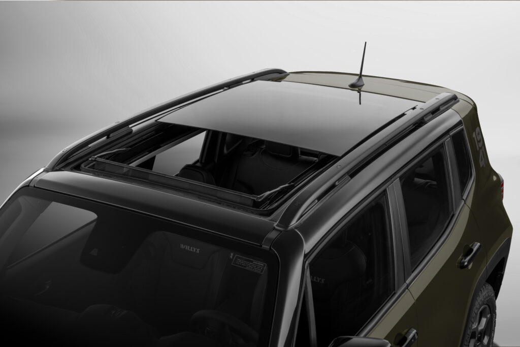 Gama tope de línea, el Renegade Willys cuenta con llantas de 17 pulgadas con neumáticos Scorpion ATR+ que garantizan la máxima capacidad off-road para quienes desean afrontar terrenos más desafiantes. Incluye techo panorámico con apertura, asientos con firma Willys, pantalla multimedia de 8.4 pulgadas con sistema de emparejamiento inalámbrico, tablero digital de 7 pulgadas, colorido y configurable, además de aire acondicionado automático de doble zona.
