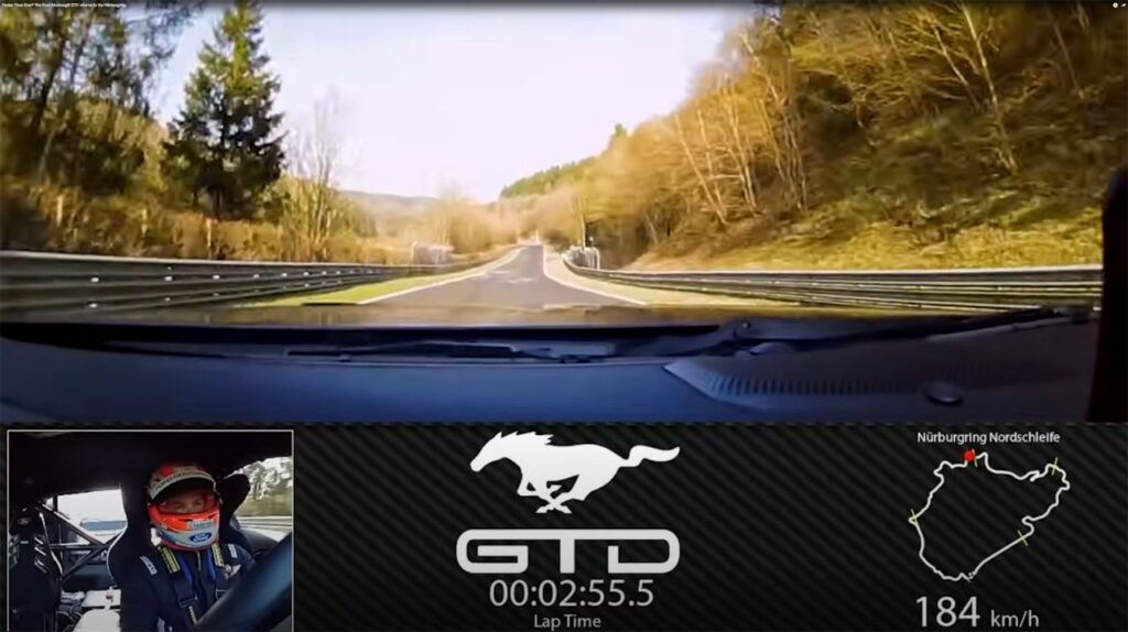 El Mustang GTD, versión de calle del GT3 de competición, se convirtió en el primer vehículo deportivo de un fabricante estadounidense en dar una vuelta por debajo de los 7 minutos en el circuito de Nürburgring en agosto. Ahora, mejoró aún más y fue 5,5 segundos más rápido. Con un tiempo de 6 minutos y 52,072 segundos, subió del sexto al cuarto lugar en el ranking de coches deportivos de producción en el circuito alemán – ver el video de la vuelta completa.