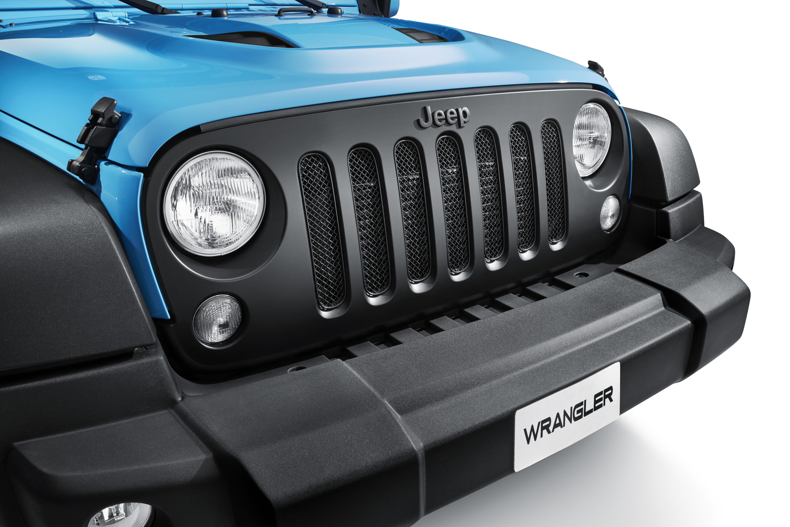 El Jeep Wrangler Rubicon con exterior azul Chief exhibido en Ginebra cuenta con Mopar® ONE, el paquete de personalización especial para todoterreno, de Mopar®, y que incluye accesorios para off-road y kit de elevación homologados por el constructor. Con Mopar® ONE, el ya muy capaz modelo Rubicon entrega unas prestaciones off-road aún mayores. El paquete se puede pedir a partir de marzo e incluye un kit de elevación de 2 pulgadas, un estabilizador de la dirección, llantas de aluminio fundido de 17 pulgadas Performance Gladiator pintadas en negro con grandes neumáticos Hankook Dynapro 265/75 R17, faldillas delanteras y traseras moldeadas, tapa de depósito de combustible en negro y placa Mopar®.